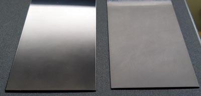 写真左:光沢ステンレスにそのまま黒色無電解ニッケルめっき